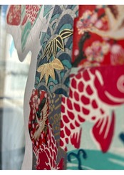 I’ve been working on a Michigan map inspired by the Great Lake State. I used rich blues and reds, with water features woven throughout and included Japanese trees—plum, bamboo, and pines. There are also many hidden appliqués that reveal themselves only through touch