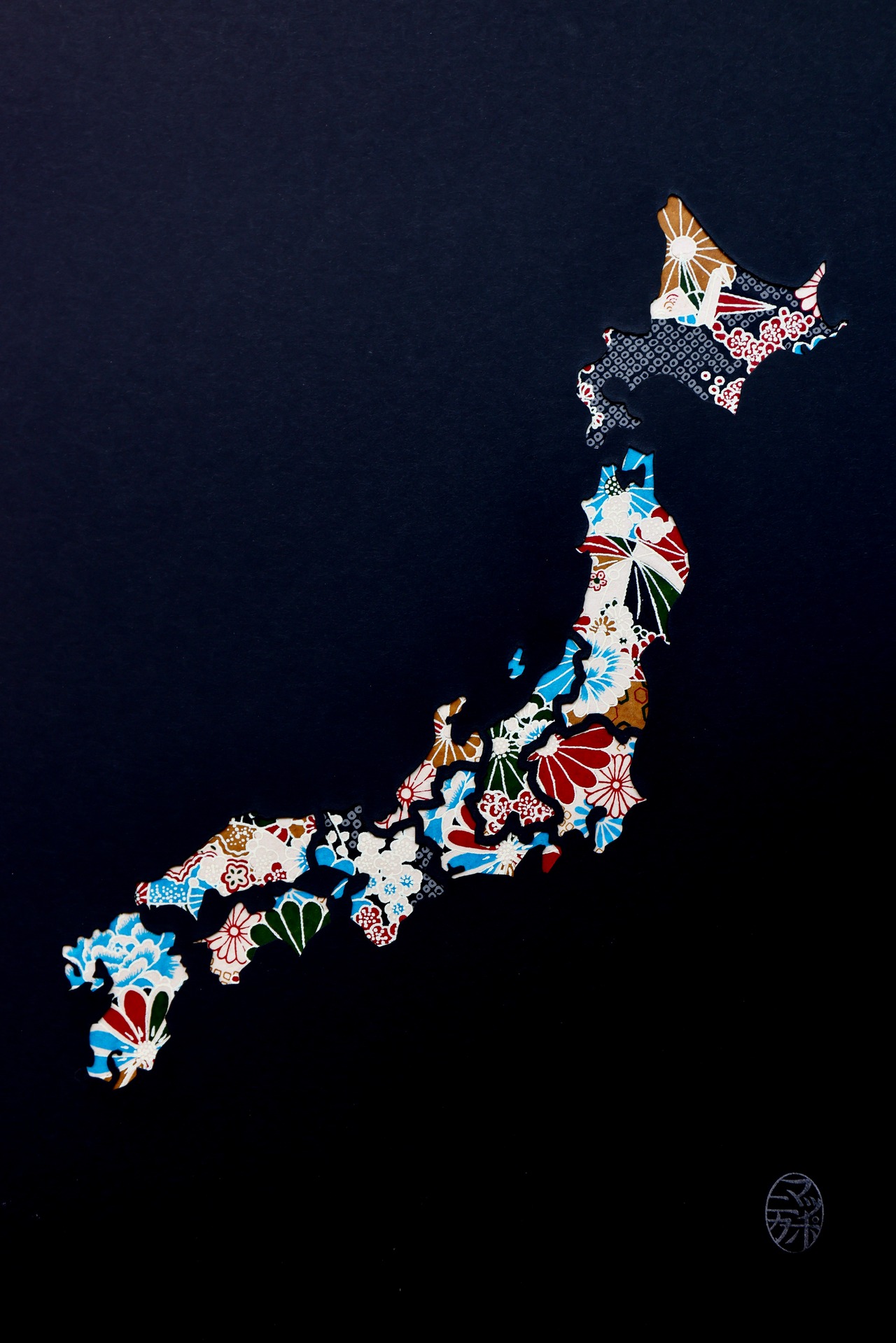 Map of Japan with 10 regions, decorated with different patterns taken from 1 single sheet of