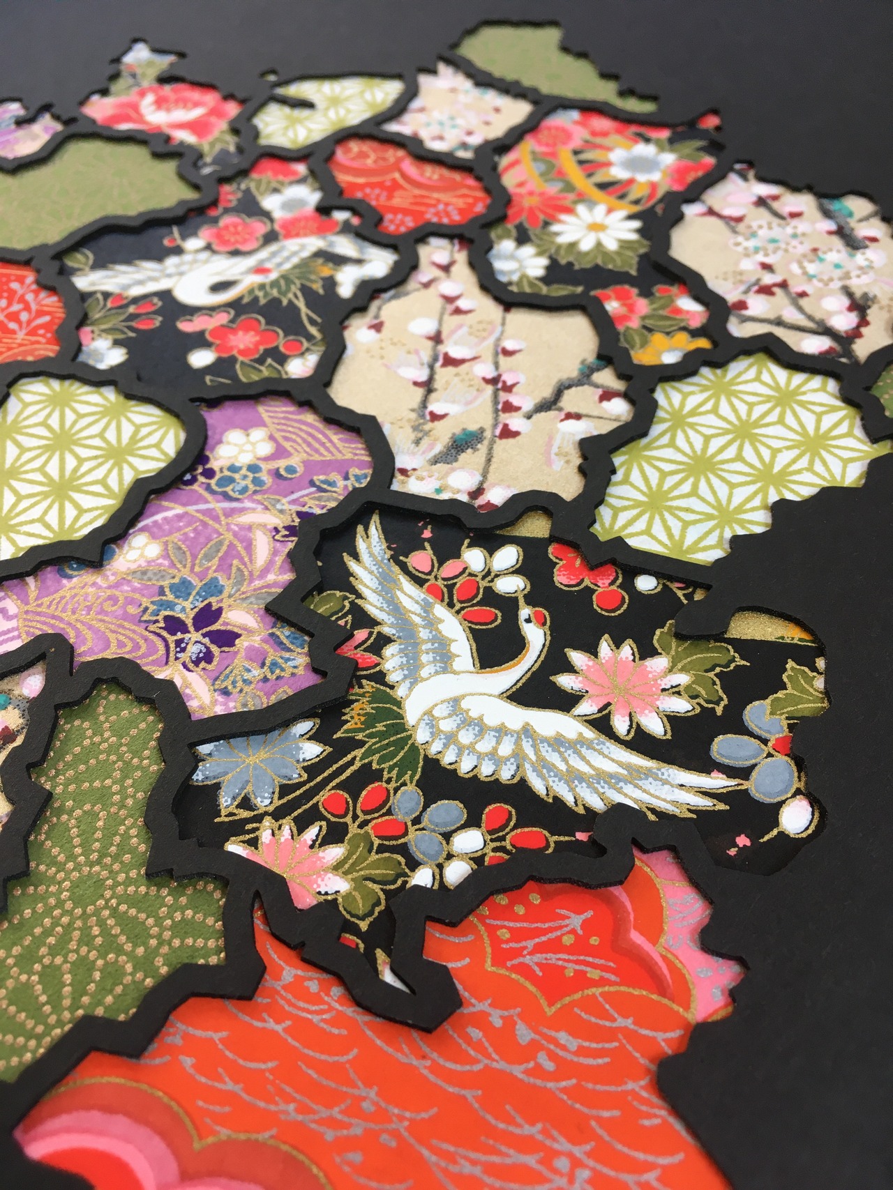 Collage: 6 types of Japanese traditional papers (hand cut).