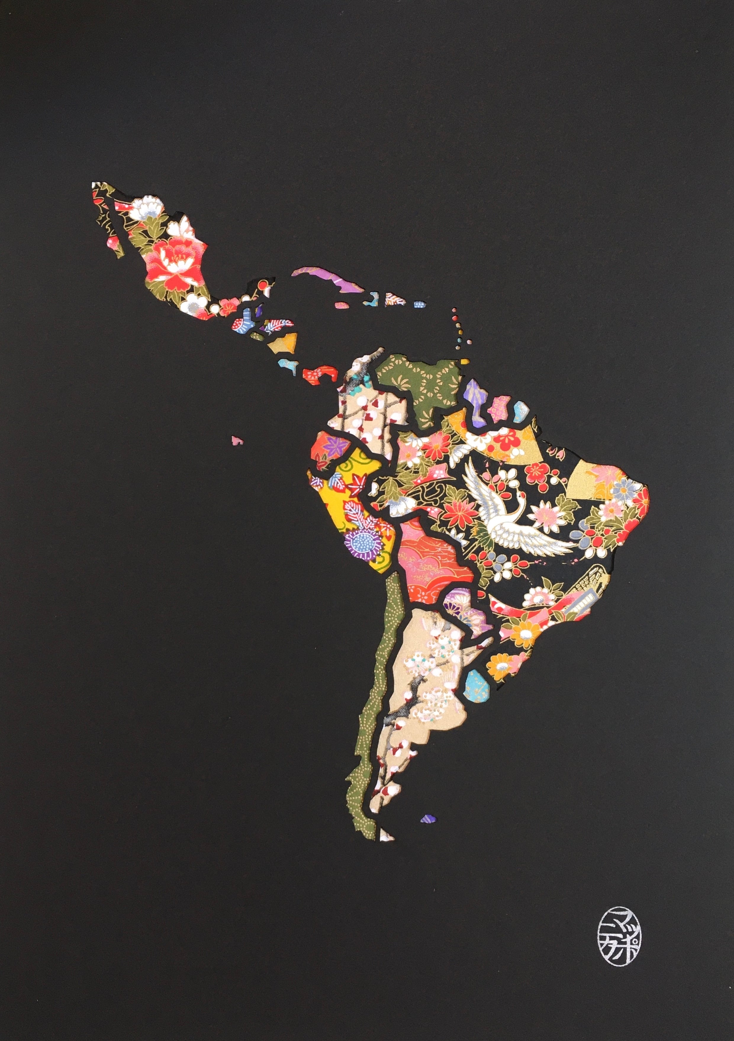 Collage: 9 types of Japanese traditional papers (hand cut).